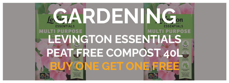 Levington's Essential Peat Free Compost, 40L, is buy one get one free throughout the month of March. Perfect for pots, containers, hanging baskets, and bedding into soil.