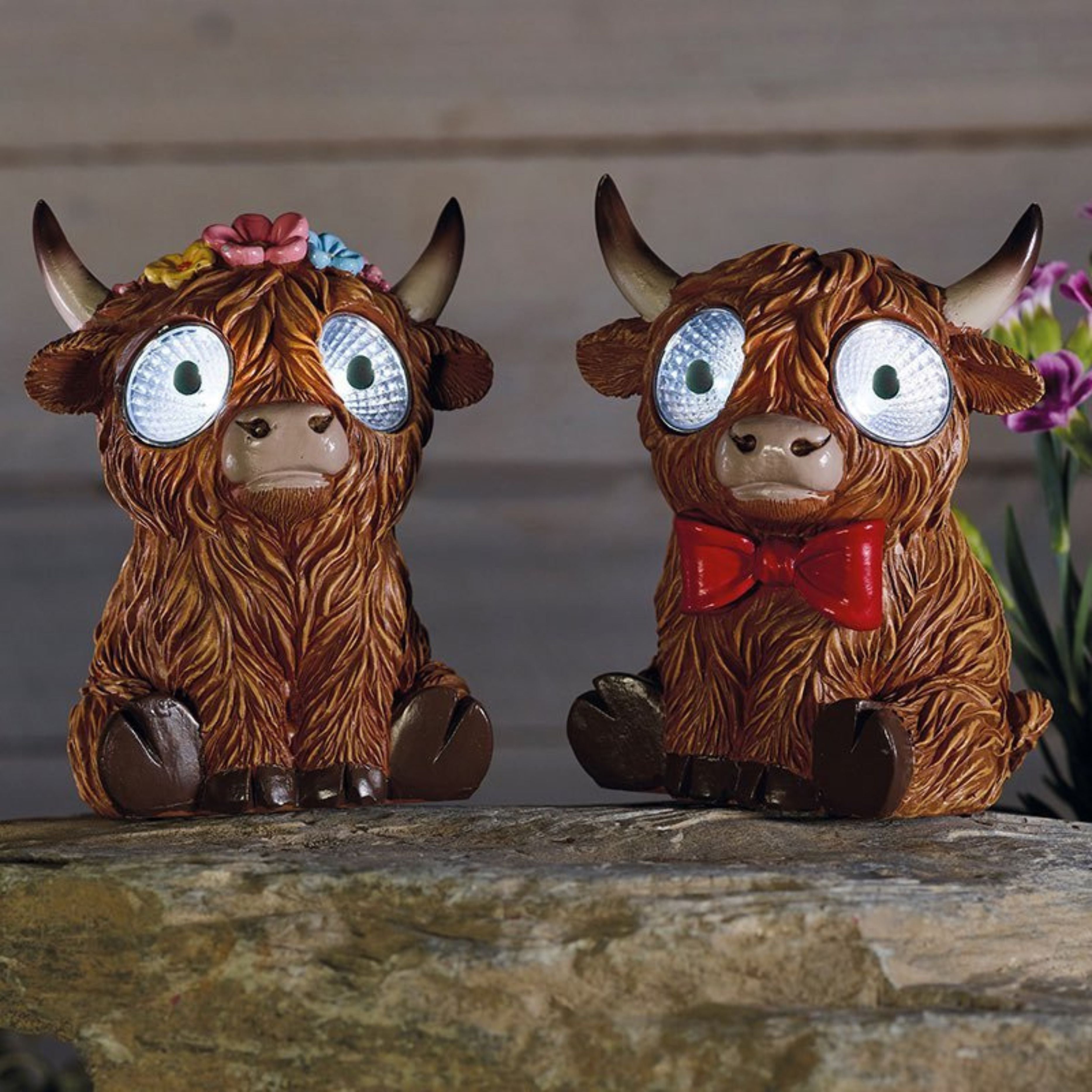 The Bright Eyes Highlander is supplied in one of two different designs, with one selected at random at the time of purchase, adding an element of surprise to every order. Solar powered for total convenience, it charges naturally in sunlight and illuminates at dusk with no wiring, plugs or maintenance required.