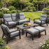 The ENJOi Denver Lounge Set delivers contemporary comfort with clean architectural lines and a modern charcoal finish. Designed for relaxed outdoor living, this stylish set features a spacious three-seater sofa, two generously proportioned armchairs, two coordinating footstools, and a sleek slatted coffee table — creating the perfect setting for unwinding or entertaining.