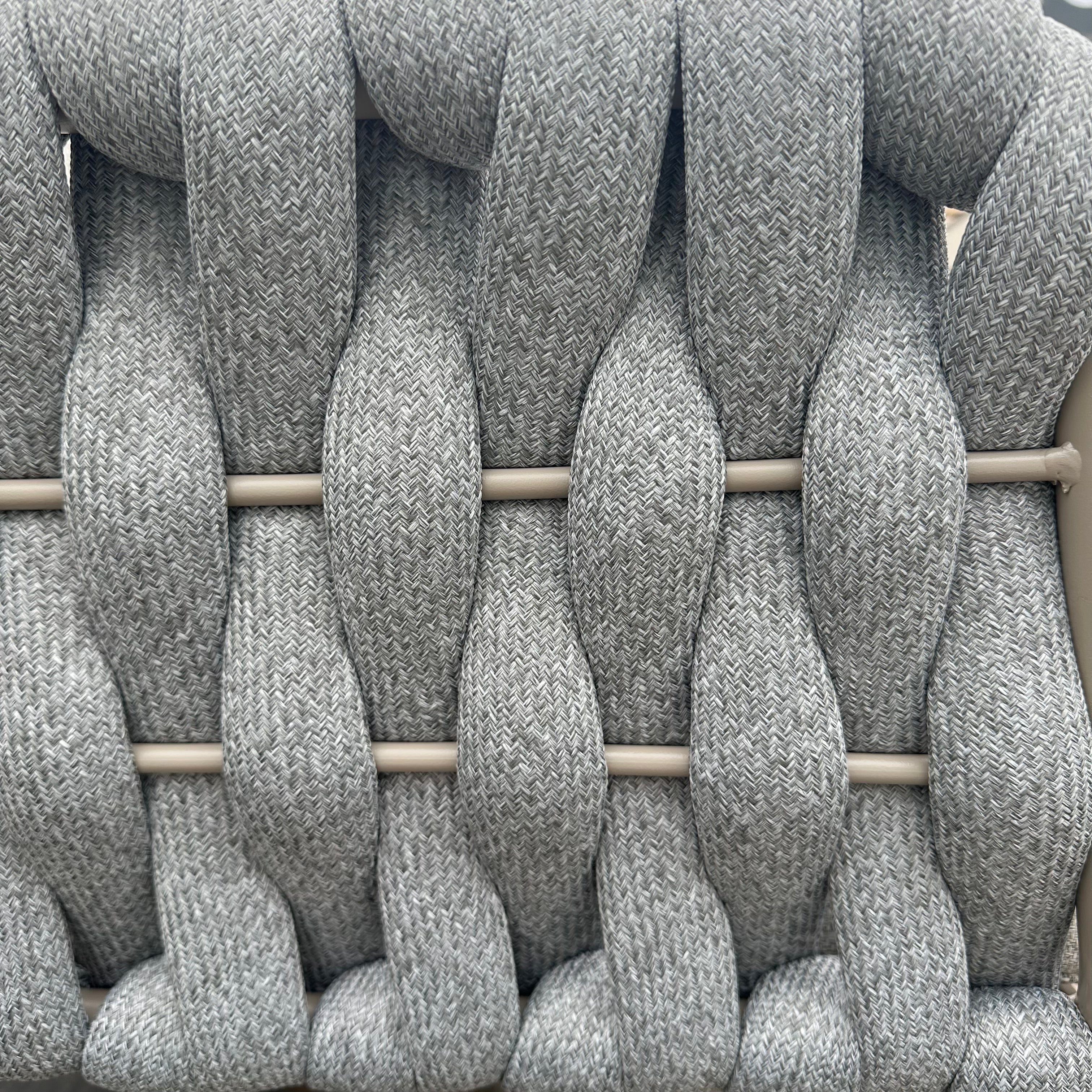 Featuring two spacious chaise-style loungers positioned opposite one another, the Elegance Daybed offers exceptional comfort with deep, supportive cushions in a soft neutral tone. The structured powder-coated aluminium frame provides strength and durability, while the distinctive handwoven rope detailing along the arms adds texture and modern character. A coordinating round side table sits neatly between the loungers, creating a practical space for drinks, books, or decorative accents.
