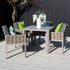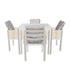 Perfectly sized for patios, terraces, or smaller gardens, the Grace Four Seat Set brings a touch of sophistication to outdoor meals or relaxed gatherings. The plush grey cushions add depth and comfort, complementing the neutral tones beautifully for a timeless, modern look that enhances any space.