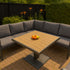 The ENJOi Munich Lounge Dining Set shown here is the perfect mix of contemporary styling, practical dining height comfort, and beautifully engineered materials. Built on a robust anthracite powder-coated aluminium frame, the set features architectural lines softened by natural wooden armrest accents, bringing warmth and a refined design touch to the modern silhouette.