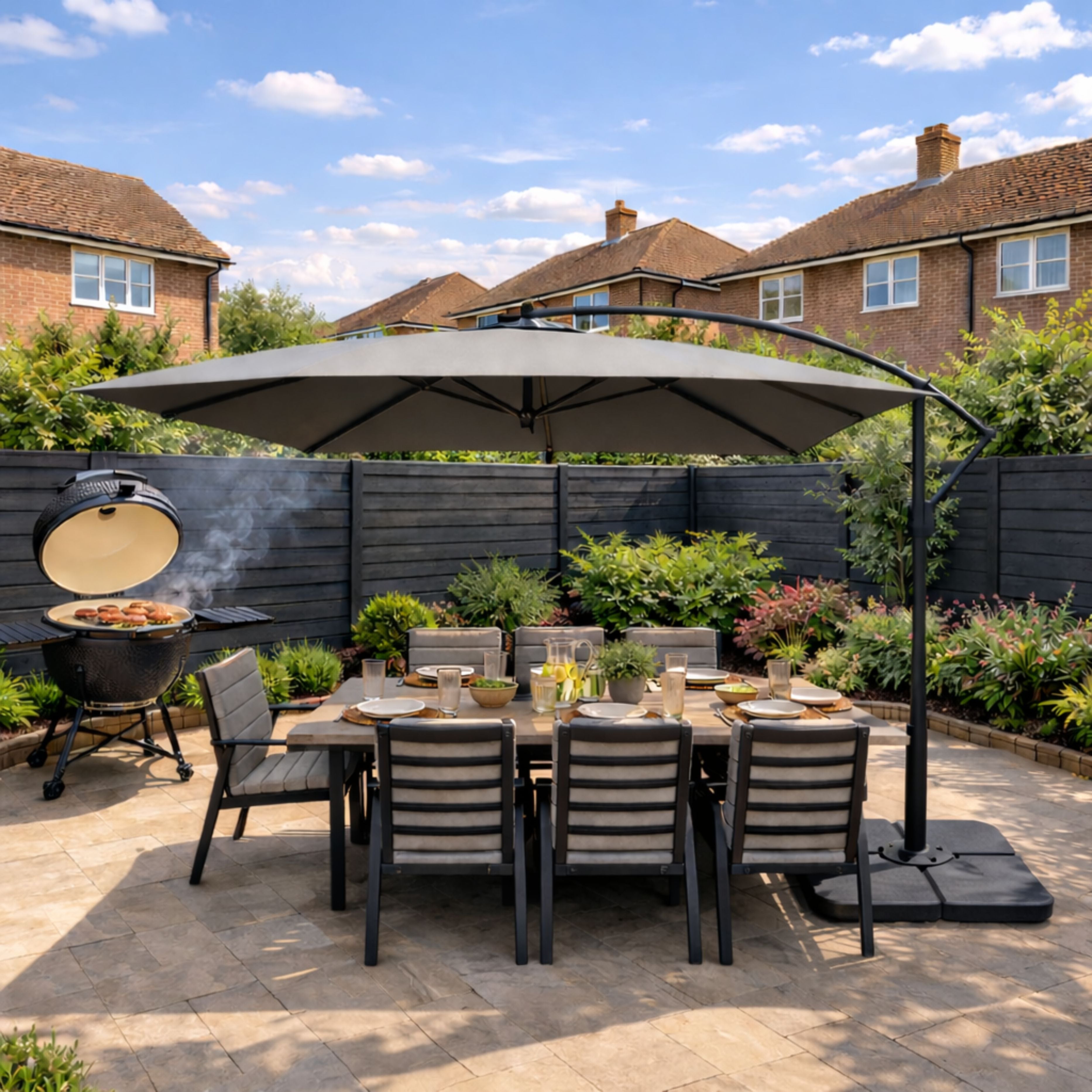 ENJOi Royal 3m x 2m Rectangular Grey Banana Cantilever Parasol with Base