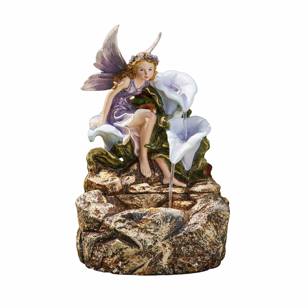 - Decorative fairy and floral cascade design for a magical garden feature
