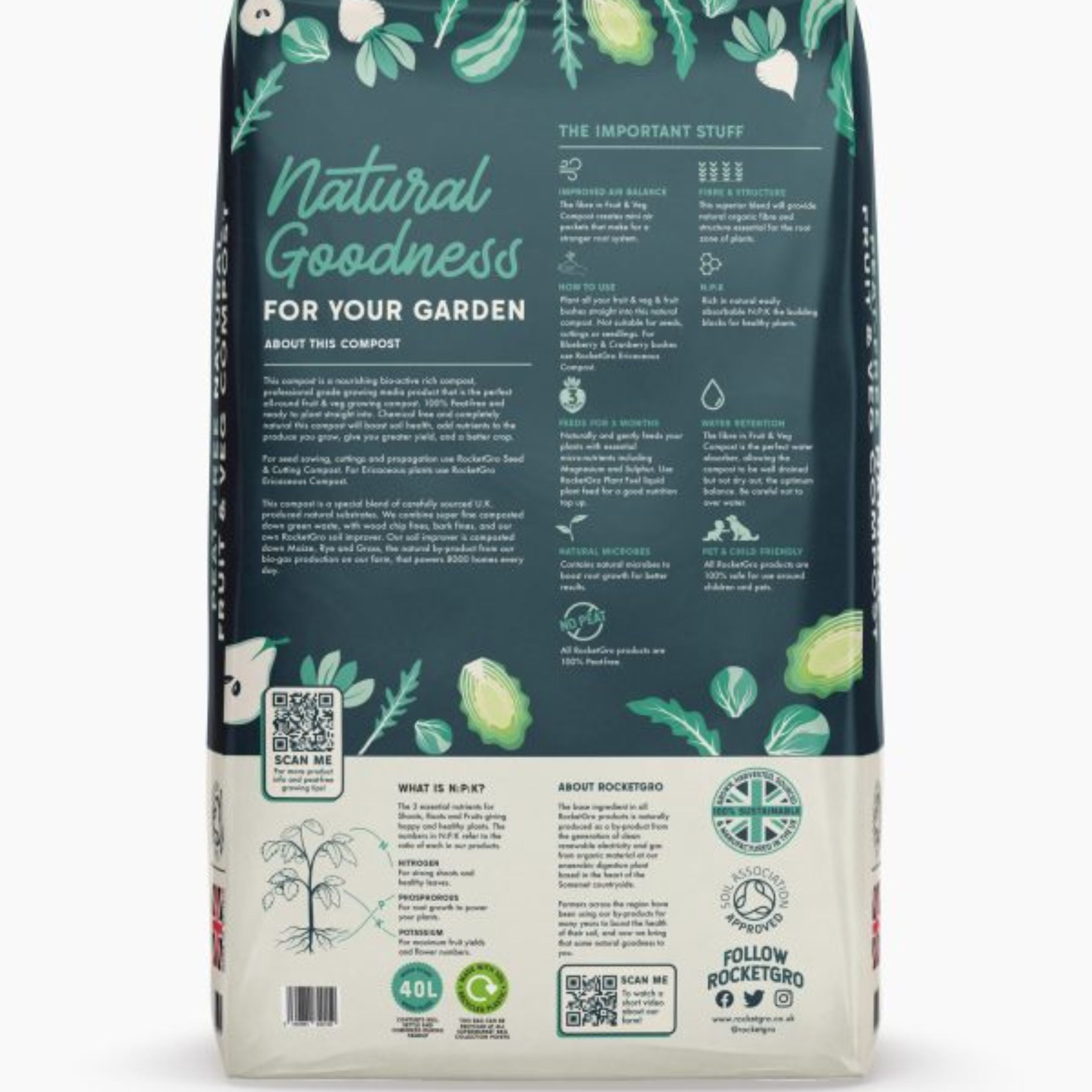 RocketGro Fruit & Veg Compost 40L is a premium, peat free blend created to give fruit, vegetables, and other edible plants the perfect start. Rich in natural organic matter and nutrients, this compost promotes strong root growth and healthy crops bursting with flavour. Its carefully balanced texture retains moisture while providing excellent drainage — ideal for thriving fruit and vegetable gardens.